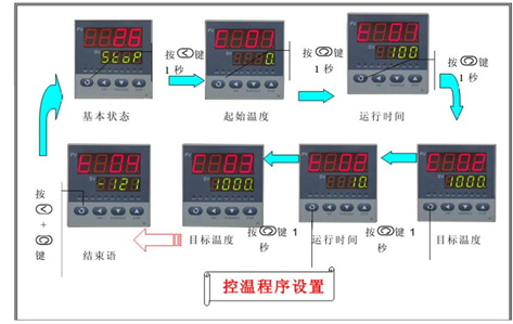 程序运行结束后,仪表处于“ Stop ”的基本状态。若中途需停止运行控温程序,按仪表的停止键使仪表处于“ Stop ”的基本状态。
